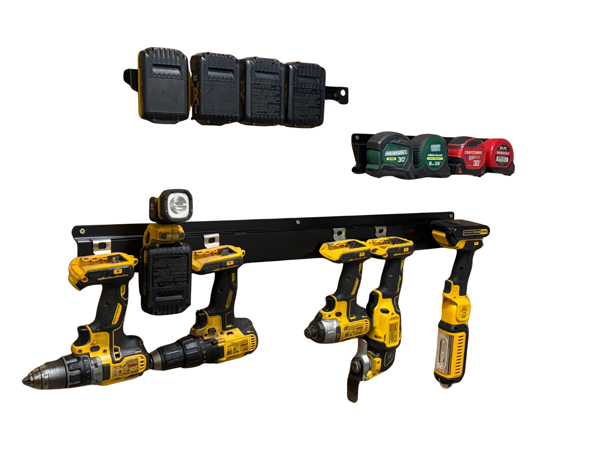 Holds multiple drills, impact drivers, and other cordless tools