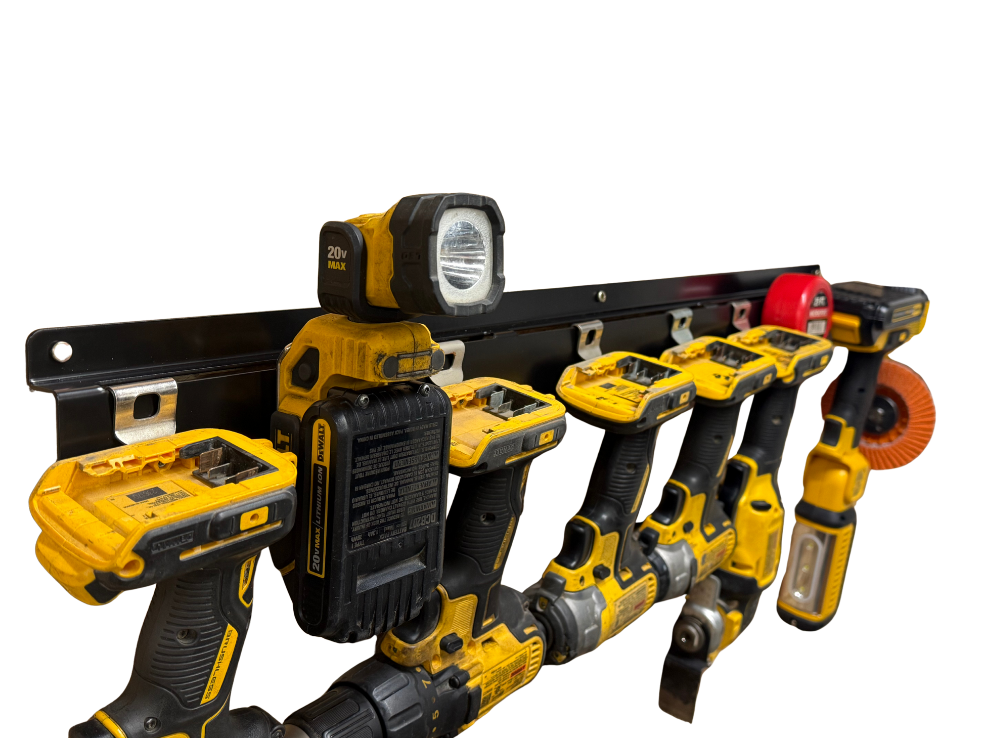 Keep your shop organized and your most-used tools within easy reach with our heavy-duty steel power tool holder, built to handle the demands of real-world workspaces. Designed to securely hold power tools with metal belt clips and even tape measures, this versatile rack is available in 17” or 33” lengths. Can be secured to jobsite trailers, service trucks, toolboxes, cabinets, and workbenches.